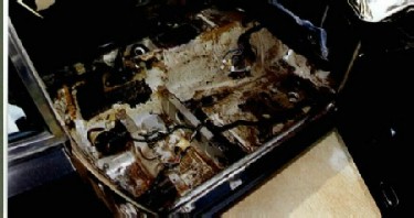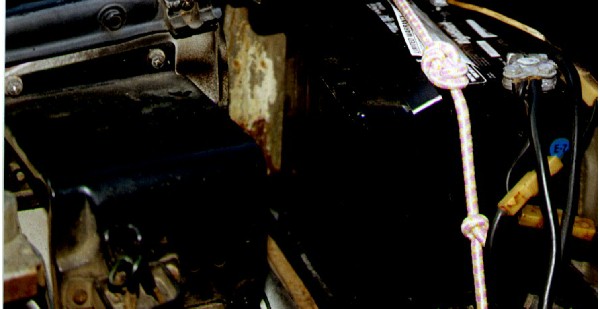 Aha, there is some rust next to the battery! Pretty much surface stuff, a little sanding and some Eastwood Corroless should do the job. The Optima battery is a dry cell so the acid eating through the paint that caused the rust will not be happening anymore.