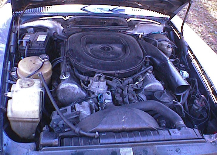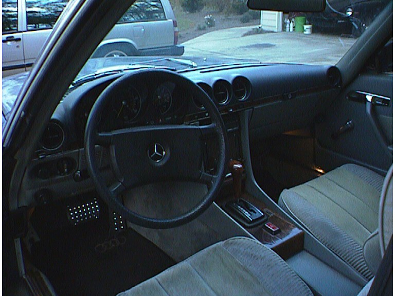 The car has been maintained very well, the original timing chain was replaced at 150,000 miles and had little stretch, I changed it and the tensioner as a preventative measure. The motor runs good and the car is reasonably quick, I imagine a little quicker than the US-spec 450SLC. Even though the 4.5 liter motor in the US market cars is larger by means of increasing the stroke, the smog devices limit the power output to about the same as the 3.5 liter motor in this car. The fuel distributor and injectors were replaced right before I bought it, all of the brake components were replaced too. After I bought it I changed the headlights back to the euro-spec units that have the vacuum adjustable height. The car is mechanically in great shape, I just have to do a little interior/exterior cosmetic work, I already rebuilt the rear deck with plywood and covered it with carpet. I changed out the wimpy factory speakers in the back with some Blaupunkt 6.5" and the front speakers with Blaupunkt 4" component speakers. A Blaupunkt CD player handles the tunes.