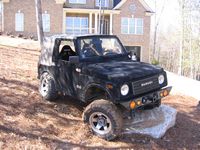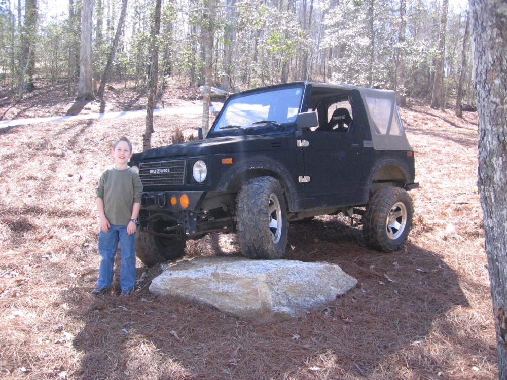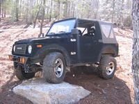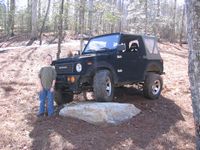 With the Touareg purchase, I really had no justification to let the Samurai sit in the driveway any more, I travel and it was getting driven very little. I told a friend I might want to get rid of it and he had a buyer in a few days, here are some pics I took the day I sold it (my wife really didn't want the flex demonstration on the rock in the front yard but she was happy enough I was selling it so.....), not bad considering the only suspension mod is a Calmini Shackle Reverse..... Click on thumbnails for larger pics: