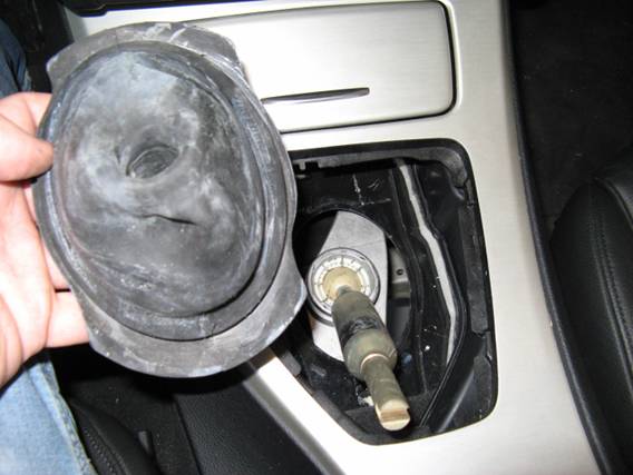 boot, and knob are reinstalled. When reinstalling the rubber boot, the lower