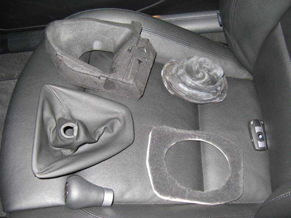 rubber boot (arrow on boot towards front of car), carpet, foam, shifter leather