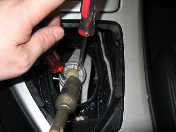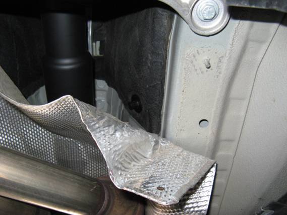 the bottom of the shifter. The heat shield can be carefully bent back to allow