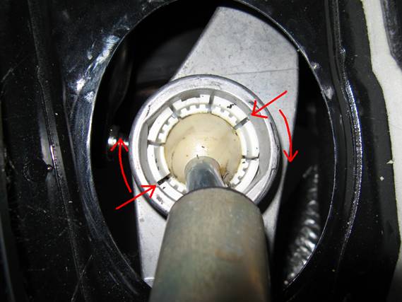 able to get the collar turned easily with two small screwdrivers- once the tabs