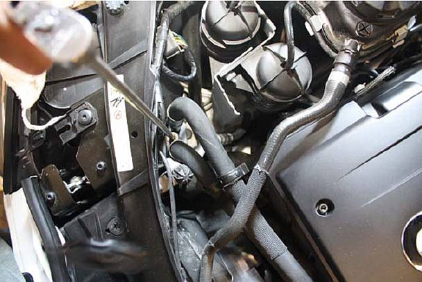 thermostat hoses and install them on the VK adapter. Using the bolt