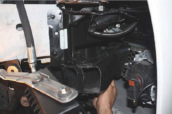 the front of the car to pull the front tabs out of the retaining holes, it allowed the duct to move a bit for easier access