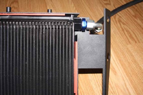 of the hose fittings on the oil cooler. This is probably the toughest part of the install because of the tight