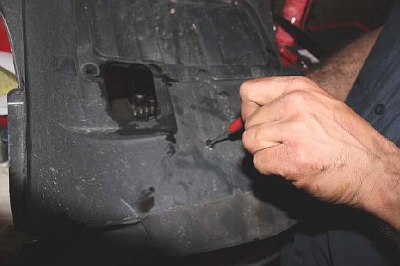 bolts holding the wheel well cover in place. Only the lower left screw on the vent