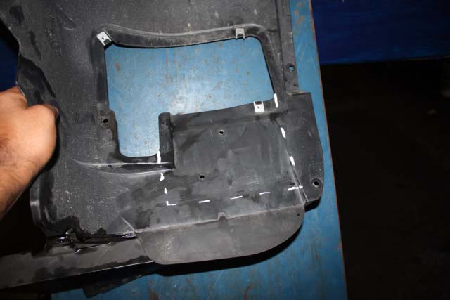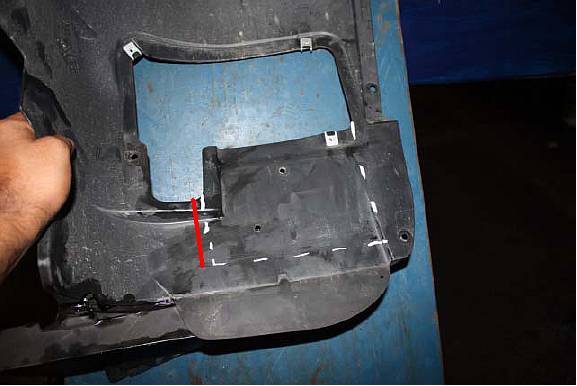 liner. Mark and cut as shown below. Use the left and bolt screw as a reference