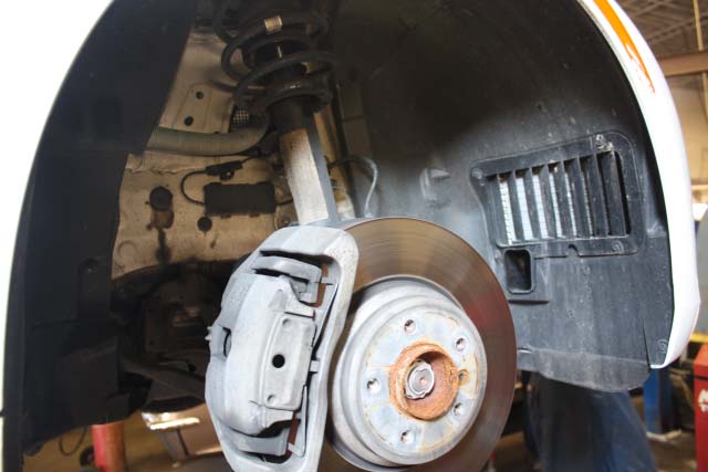 remove the brake duct vent. You can do this by removing the 8mm bolt located on