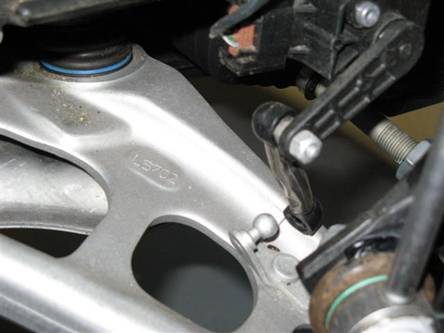 Next I lowered the jack so that the control arm was hanging freely. Make sure the