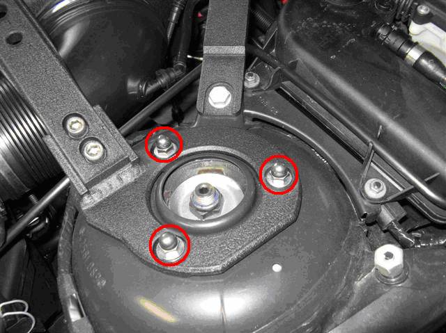upper mounting bolt (the one on the middle, the other two stay). There is a