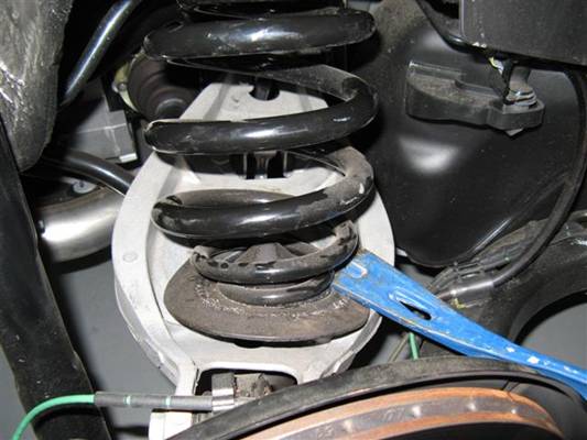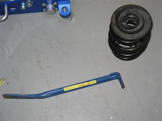 floor jack under the control arm (hockey puck for padding) was helpful to