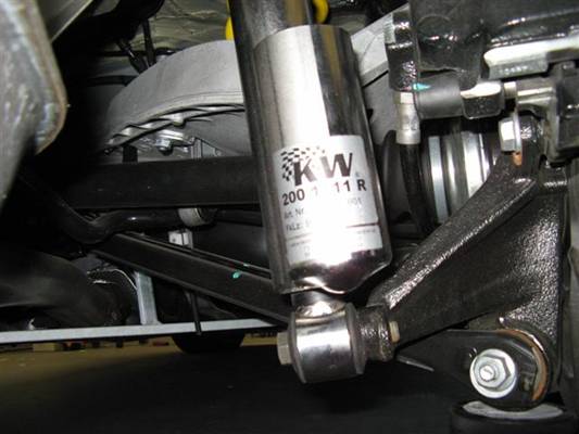 support the control arm and align the lower shock mounting bolt. The reservoir