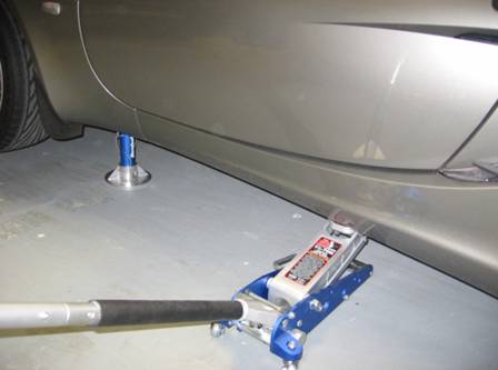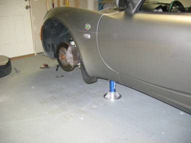 Elise needs to be jacked up with both front wheels in the air. It is best to