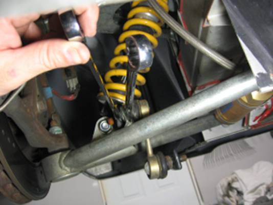 the tedious part… Un-bolt the anti-roll bar mounting brackets from the chassis.