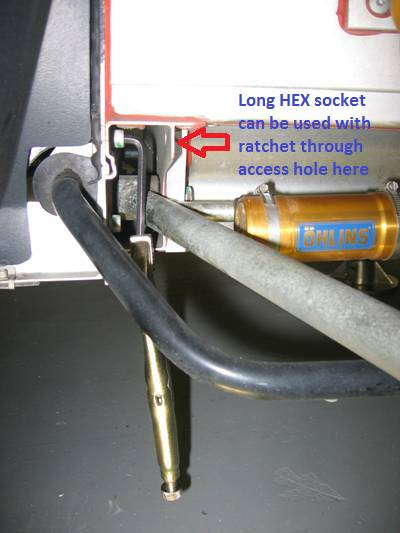 top HEX bolt so I used a ratchet and long HEX socket for this one, custom tool