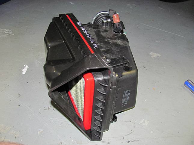 pre-filter airbox piece, old air filter, and the removed vacuum line left over.