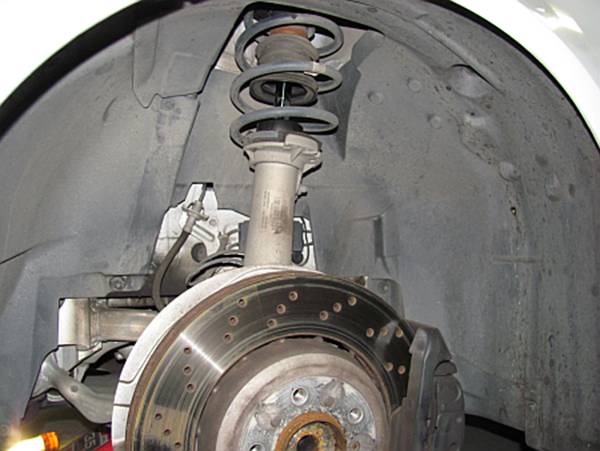 reinstalled), anti-roll bar link, all hoses/wiring clamped back into strut tube