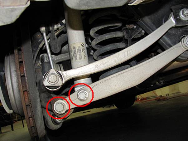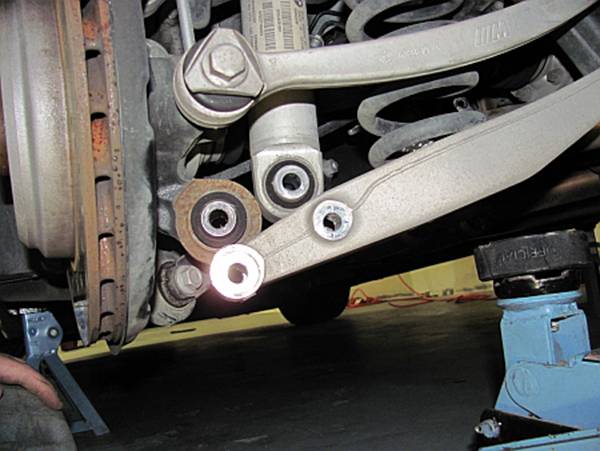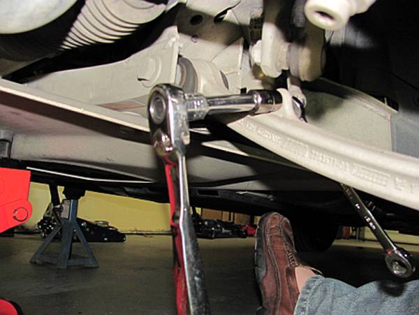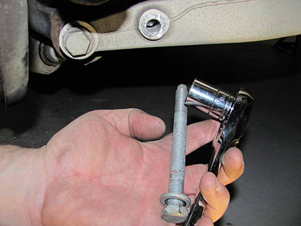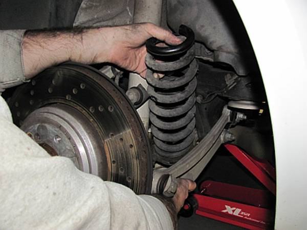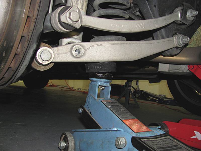 jack can be lowered once both bolts have been removed. The lower control arm is