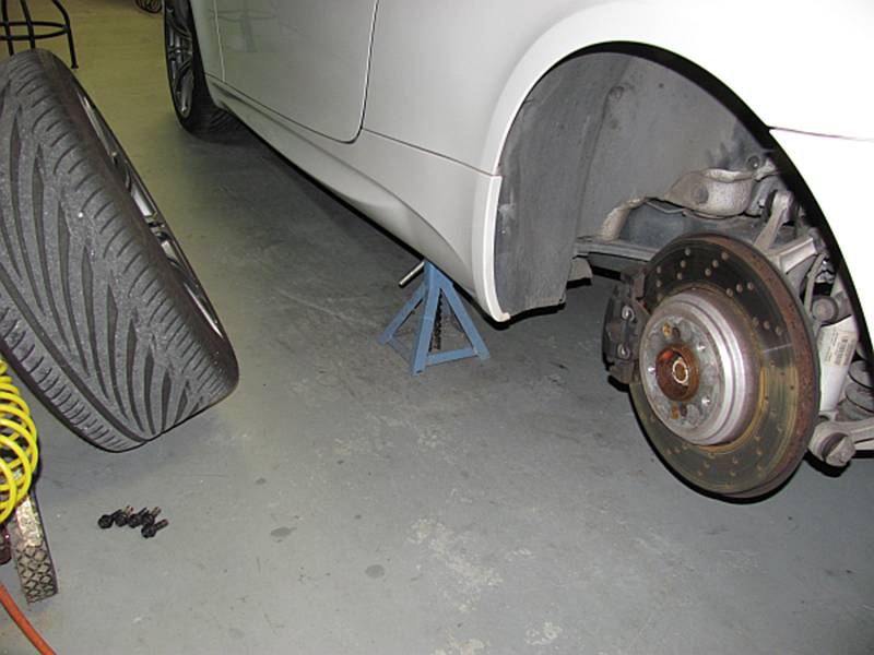 jack stands are placed under the side rear jack points. It is NOT advisable to