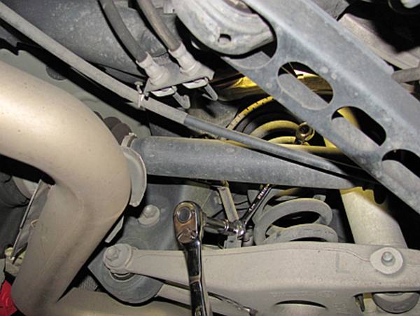bar link is removed from the strut housing, a 19mm open end wrench is used on