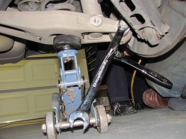 lifting the car, break all of the front wheel lug nuts loose, but don’t remove.