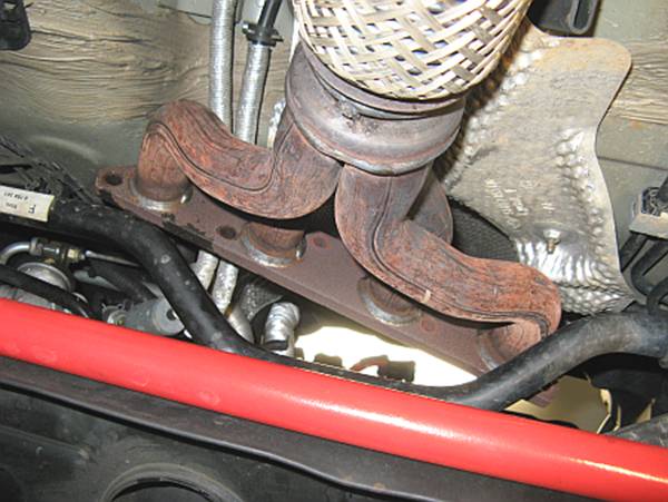 exhaust is disconnected from the exhaust manifold/catalytic convertor assembly