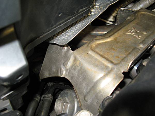top, there is a heat shield that needs to be removed- two bolts removed using a