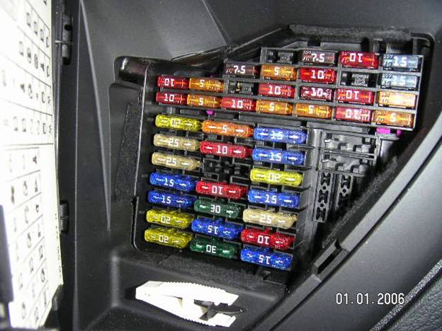 compartment light, remote/fuel tank door, motor to unlock rear lid (15A).