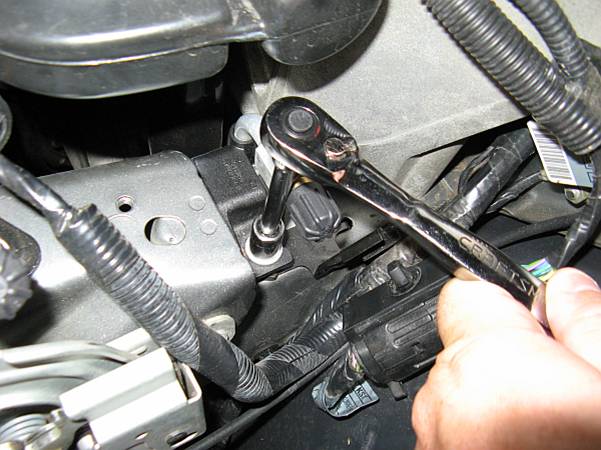 ratchet with an extension and 10mm socket, I removed the single nut holding the
