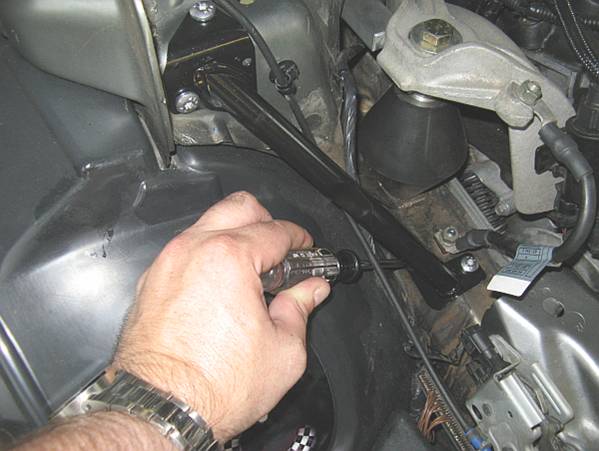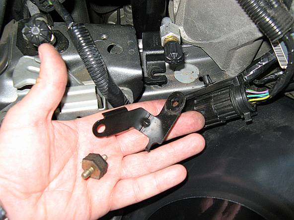 help from some pliers); it is screwed into a bolt hole in the car. The bracket can