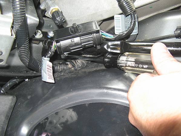 want to remove. After the nut is removed and the plastic hose bracket moved to