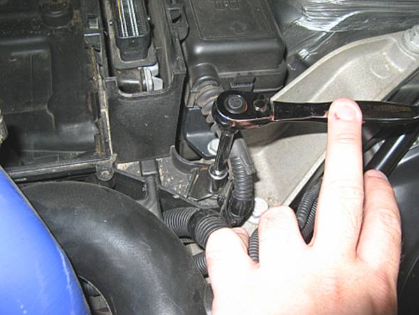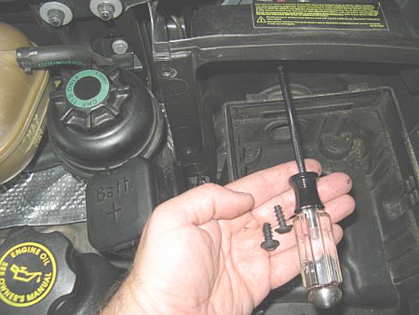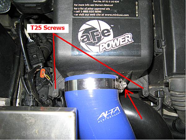 Phillips head screws are installed up front and the air intake tube reinstalled