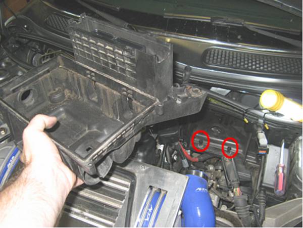of the airbox lid can be unscrewed. Prior to removing the airbox lid the