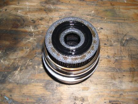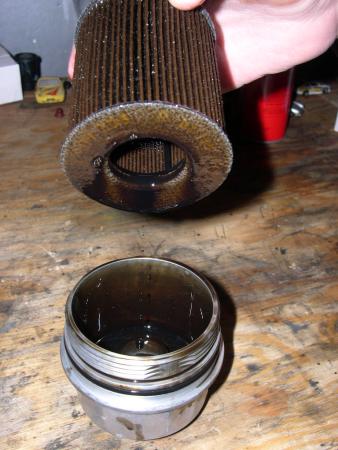 8. Here is the new filter in the housing. After installing it in the housing, oil the rubber seal with new oil. This will make you happy the next time you take the filter off.
