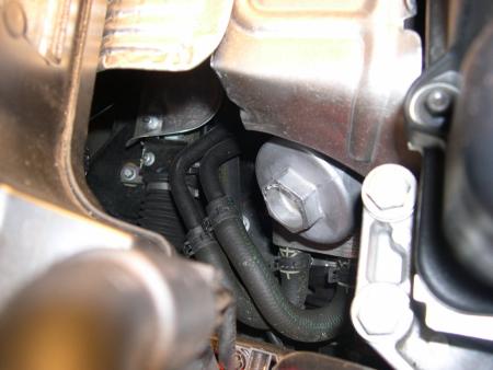 3. Drain the oil from the case before you remove the filter. This is a 13mm, and be careful, as the oil is warm.