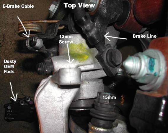 top looking down on the caliper. In this picture, I have already removed the