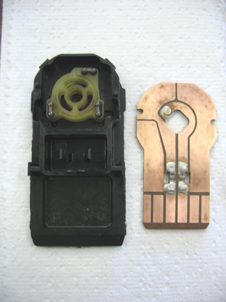 the PC board that IS the heart of the switch. There are 2 little locking tabs