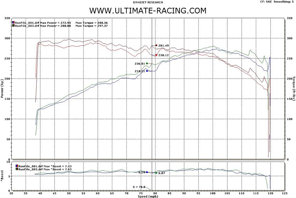 things begin to heat up. The IATs must be lower because the peak boost has dropped by about 1.5 PSI but the power feels the same or maybe a little better,