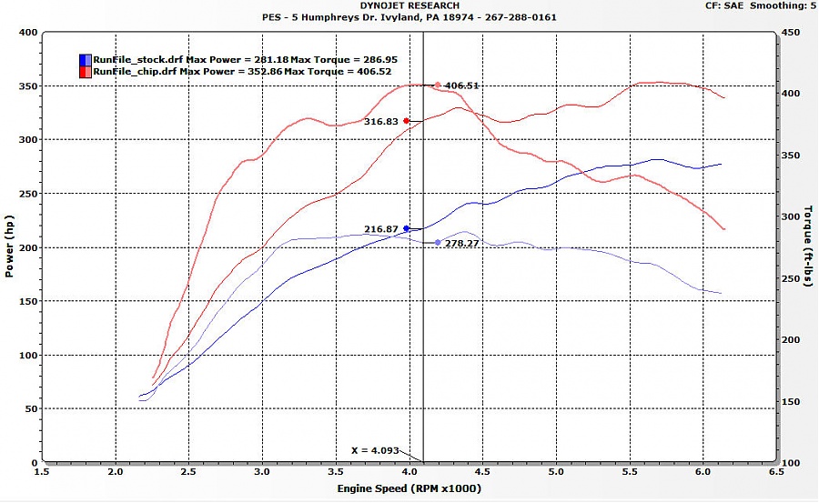 Noticeably more power, as smooth as stock from idle to redline (which comes up much faster now). Thanks to Tony and PES for bringing this to market