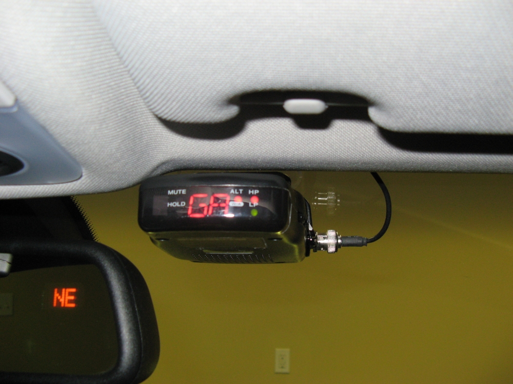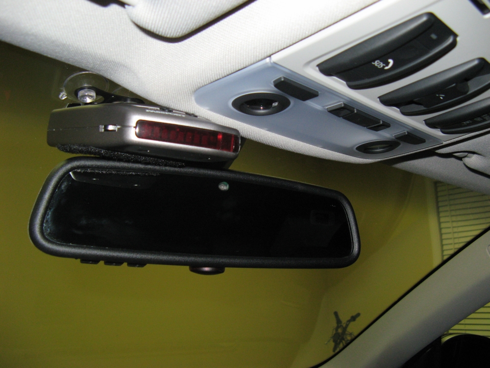 power wire to avoid running wire under the a-pillar airbag. I mounted the detector above the rearview mirror, using soft Velcro on the bottom to prevent rattles