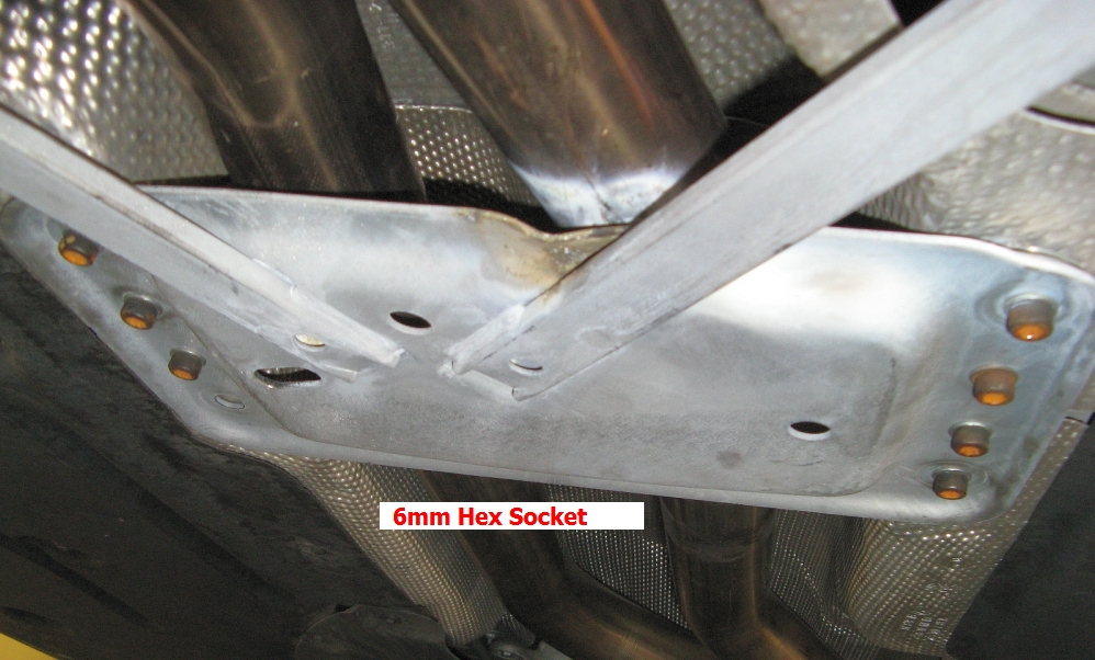 and the eight Torx bolts (T50). Installation of the Hotchkis brace is reverse of removal, about 20 minutes total for the R&R including backing onto the ramps.