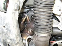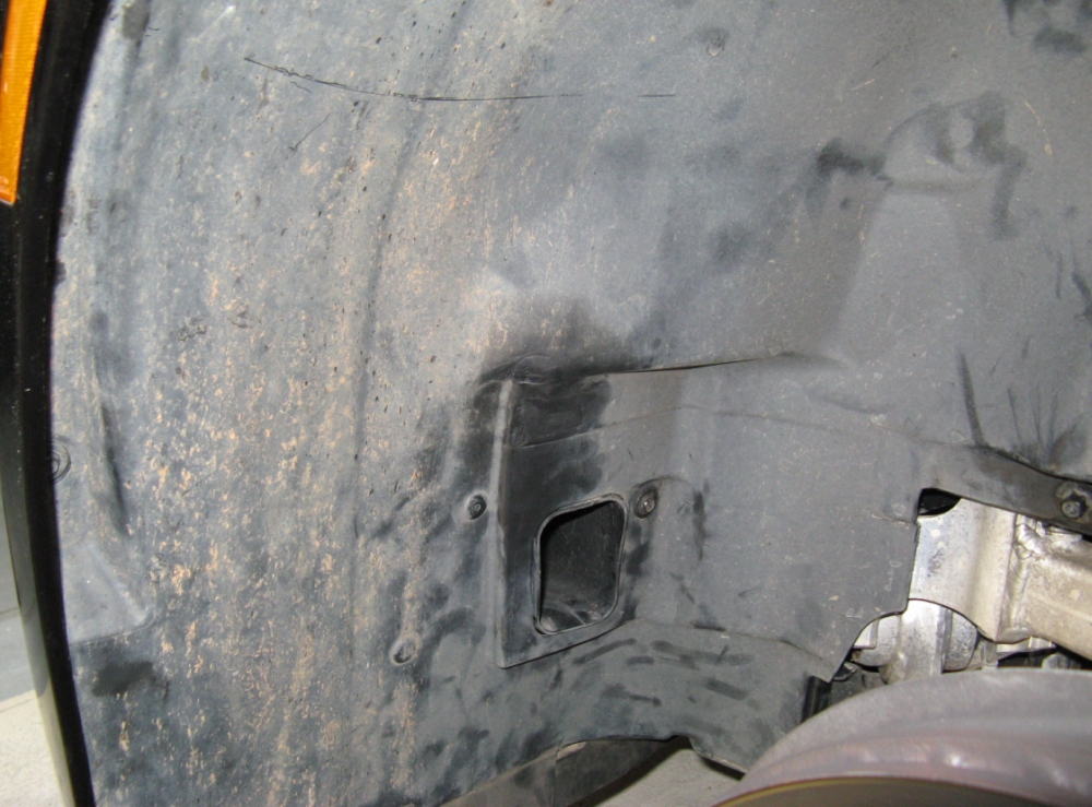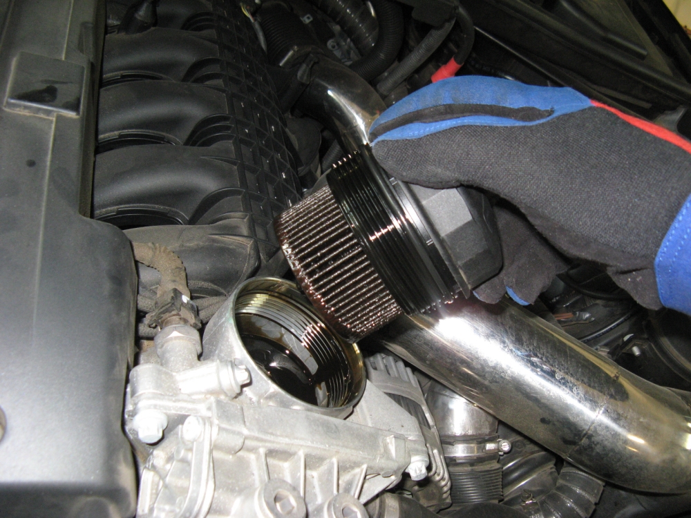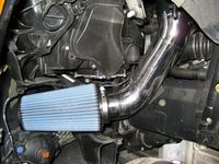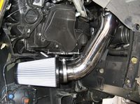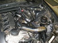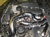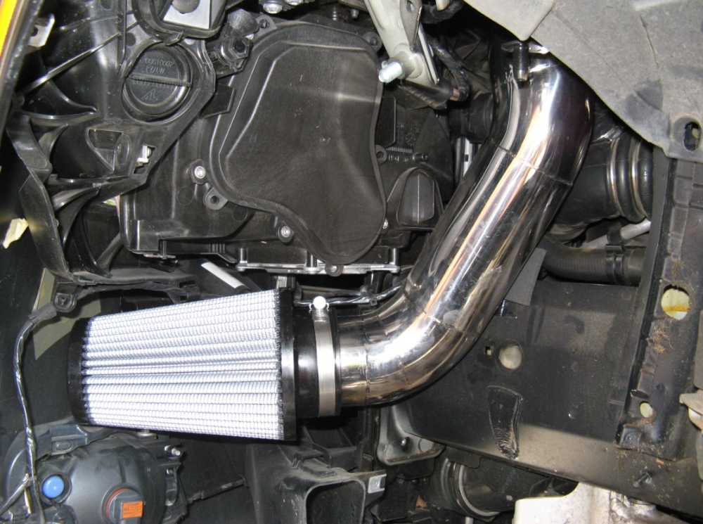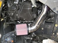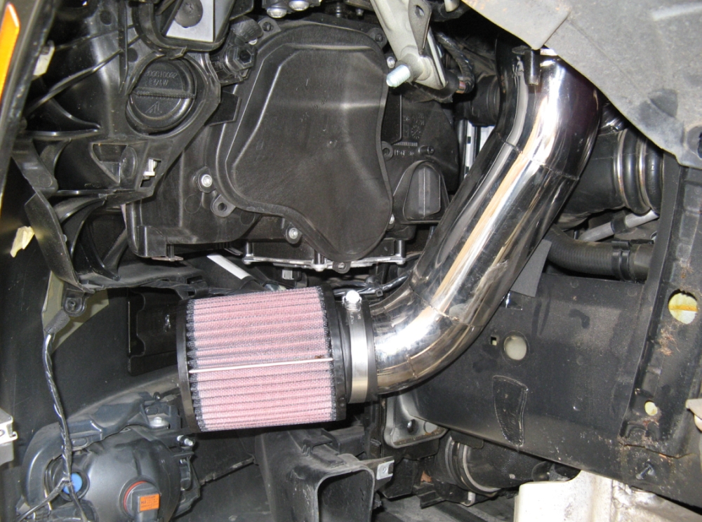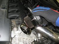 CAI (Cold Air Induction) installed. Installation requires removal of power steering reservoir bracket and support before it is relocated. Fender liner front section