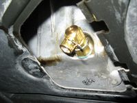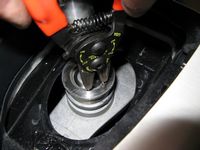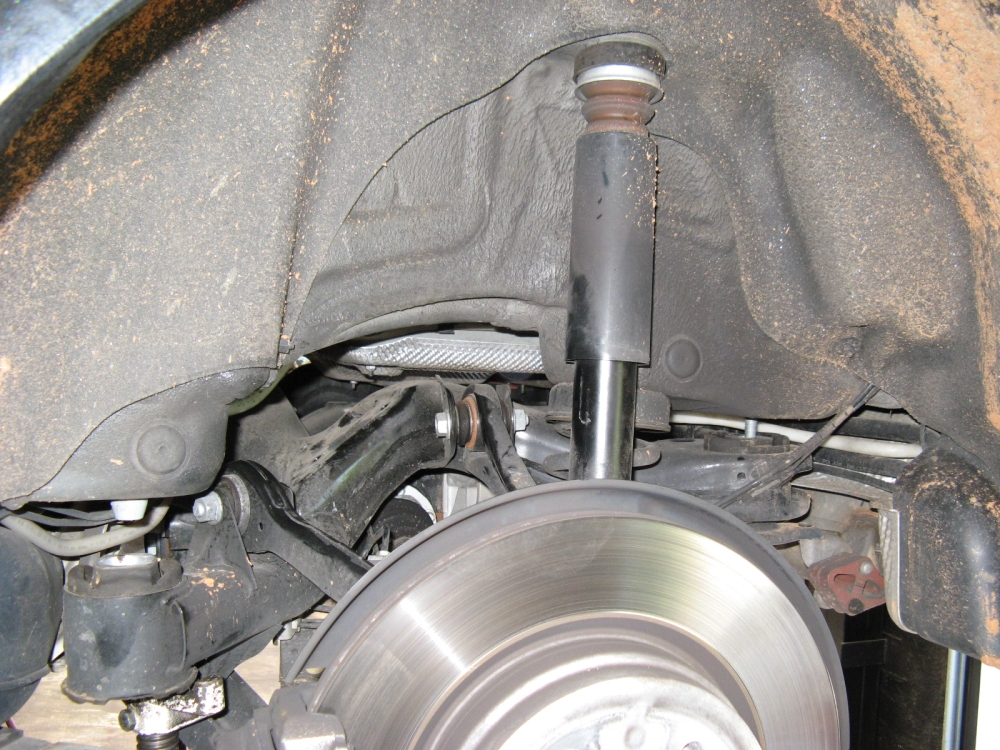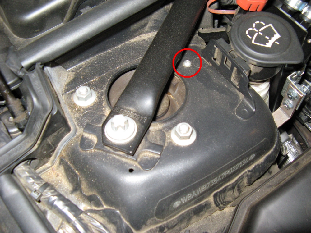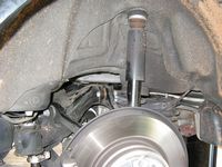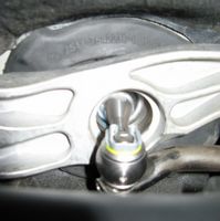 The factory strut assembly index pins were also removed (drill) to allow some camber adjustment, these are the rivets that look like they have a
