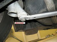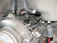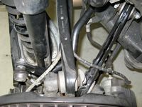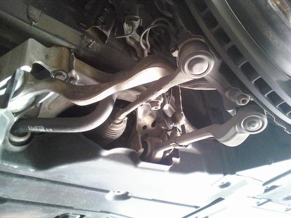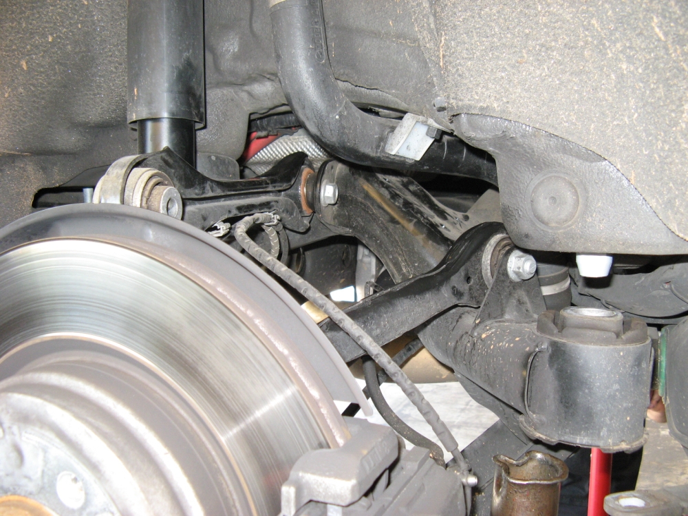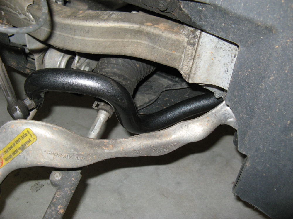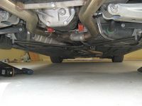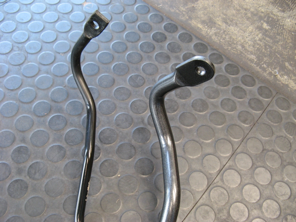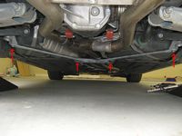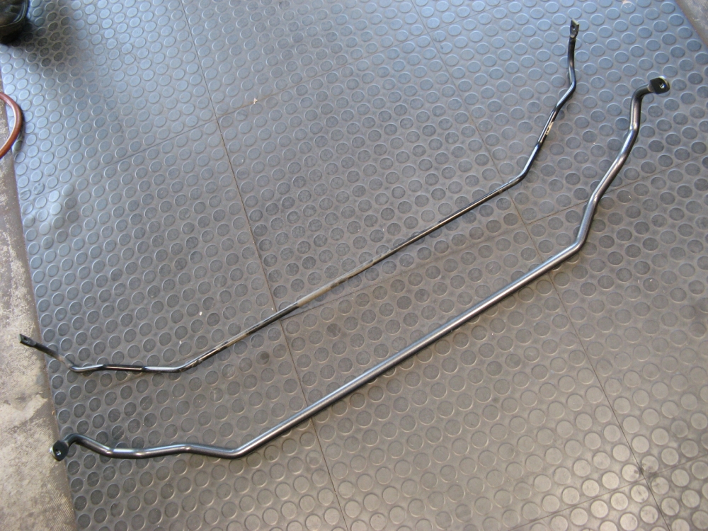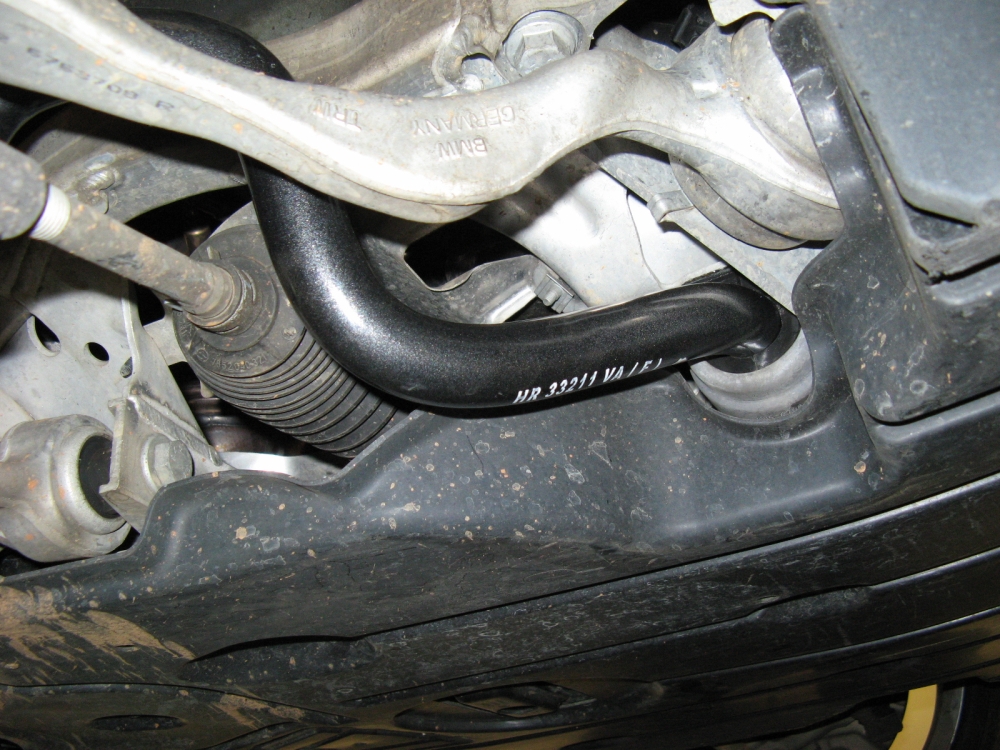 illustrate the subframe drop (pics taken after OE bar removed), the significant difference in rear bar size, and H&R bars post installation: PES