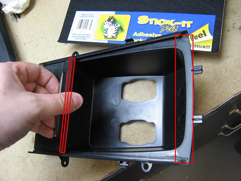 lip that the cover slides into- I used felt tape on top and Velcro on the lower piece, it is tight so use care when closing. It is a good idea to reassemble the bin and