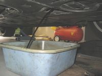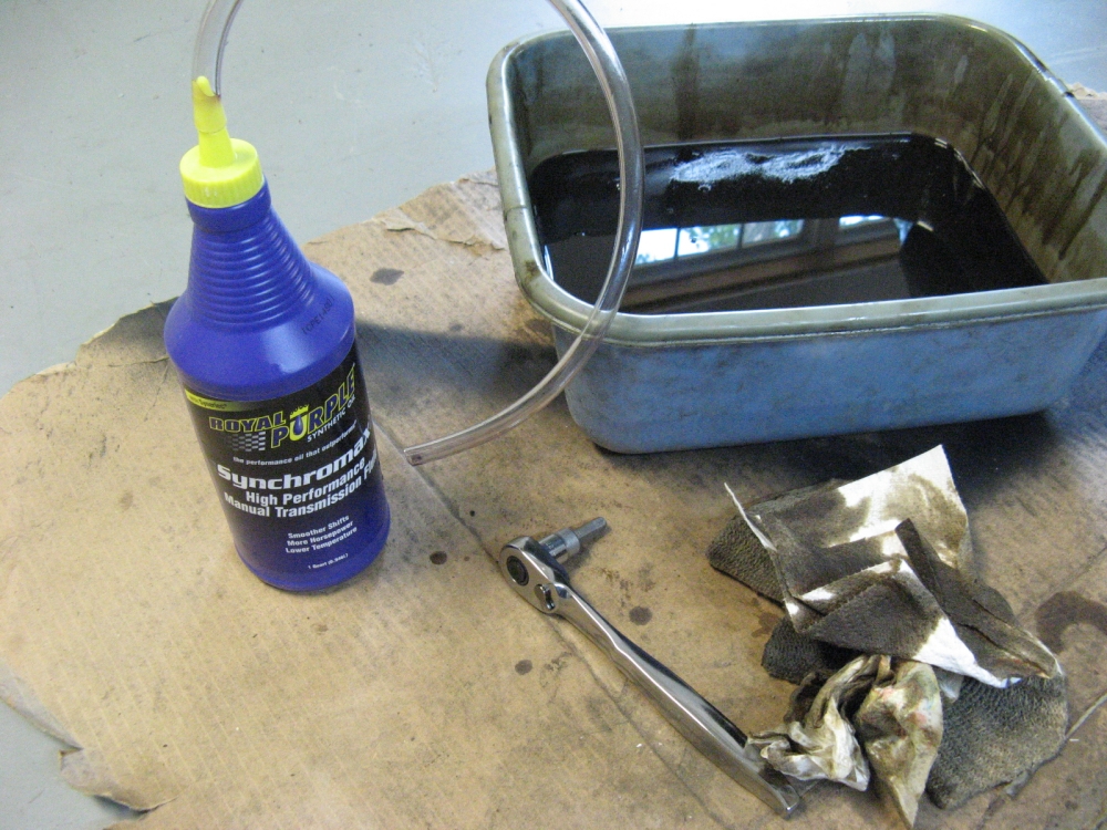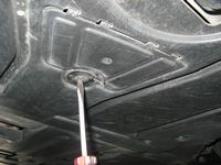 Cliffs Notes DIY: Raise car so that it is level front to back and side to side (4 jack stands work great), remove plastic tray under transmission (my