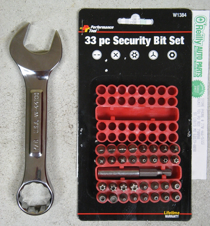 I had all the tools required except for the T20H (security Torx) and a 7/8" stubby wrench. I found a security bit set that included the bit I needed for $7