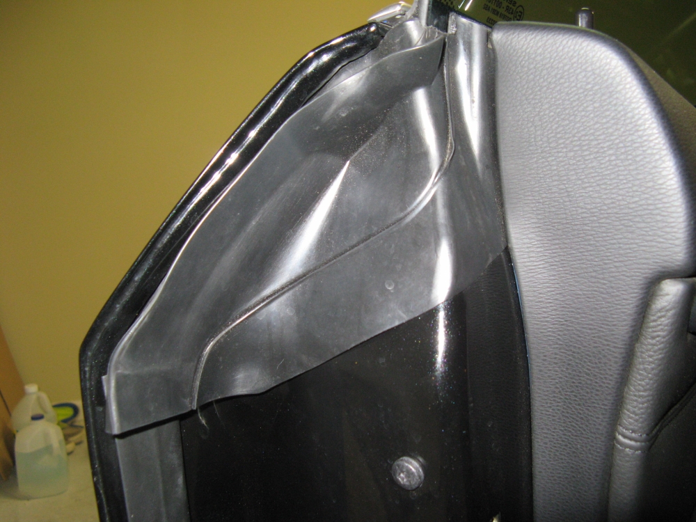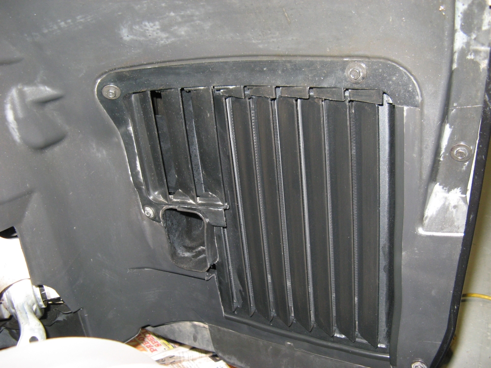 trace on to the intake, after cutting it looks almost symetrical. To make the piece look finished, some door edge trim was added to the cut edge. I think it