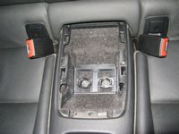 By pulling up on the bin, the 6 clips for the storage bin will pop out of the console, and then you can pull up, forward, and out from the back seat. Once out, the bin can